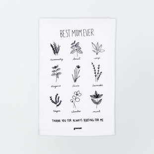 We’re completely obsessed with the Best Mom Ever Tea Towel from Paper Baristas. This is great for the mom who loves cooking, baking, and anything sustainable. In a happy-go-lucky font, written is “Best Mom Ever” and “Thank you for always rooting for me”. Tea towel is sized at 27”x27”.