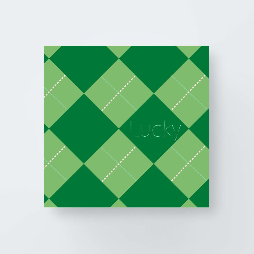 A fresh take on classic argyle, this lucky green print blends stitched details with a modern plaid for a timeless and festive feel. Perfect for celebrating St. Patrick’s Day or adding a touch of charm to any gift!